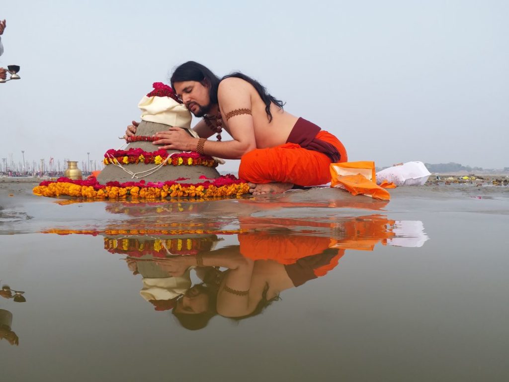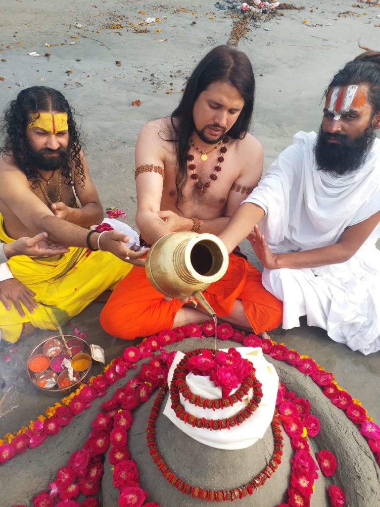 इसी भाव के साथ बालू से निर्मित पार्थिव शिवलिंग का अभिषेक कर पूजा अर्चना की उनके साथ कई साधु संतों ने भी गंगा किनारे अभिषेक किया।