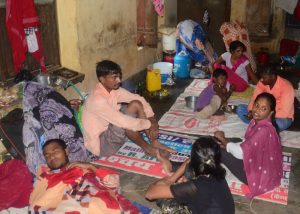 नगर निगम द्वारा बनाए गए आश्रय स्थल में पानी घटने का इंतजार करते शरणार्थी। ( छाया अनुराग शुक्ला )