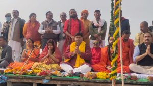 प्रयागराज (अनुराग दर्शन समाचार )। पतित पावनी गंगा यमुना सरस्वती के त्रिवेणी संगम के पावन तट पर आज माघ मेला 2021-22 के सकुशल सम्पन्न होने की मंगल कामना हेतु मण्डलायुक्त संजय गोयल, जिलाधिकारी संजय कुमार खत्री, मेलाधिकारी शेषमणि पाण्डेय, प्रयागराज विकास प्राधिकरण के उपाध्यक्ष अरविंद चैहान तथा धर्माचार्यों एवं अन्य पुलिस तथा प्रशासनिक अधिकारियों की उपस्थिति में वैदिक मंत्रोचार के साथ गंगा पूजन किया और मां गंगा से माघ मेला को सकुशल एवं निर्विघ्न रूप से सम्पन्न कराने की कामना करते हुए आशीर्वाद मांगा। गंगा पूजन कार्यक्रम में संत समाज और महंत महामंडलेश्वर की उपस्थिति रही मठ बाघमबारी गद्दी के महंत बलवीर गिरी नागेश्वर धाम दंडी संन्यासी के संरक्षक स्वामी महेशाश्रम शंकराचार्य जी महाराज दंडी संन्यासी के विमल देव जी महाराज किन्नर अखाड़ा महामंडलेश्वर प्रदेश प्रभारी कौशल्या नंदगिरी टीना मां बैरागी अखाड़े से माधव दास उर्फ रिटेलर बाबा सत नारायण दास बबलू पंडित सहित कई विभाग के अधिकारी गण गंगा पूजन कार्यक्रम में सम्मिलित हुए। गंगा पूजन के पश्चात मण्डलायुक्त मीडिया से मुखातिब होते हुए कहा कि कोविड-19 के प्रोटोकाल का अनुपालन सुनिश्चित कराते हुए माघ मेले को सकुशल एवं निर्विघ्न रूप से सम्पन्न कराया जायेगा। इस अवसर पर डीआईजी/वरिष्ठ पुलिस अधीक्षक सर्वश्रेष्ठ त्रिपाठी एडीएम सिटी मदन कुमार सहित अन्य सम्बंधित अधिकारीगण सहित तीर्थपुरोहित एवं धर्माचार्यों के अलावा अन्य लोग उपस्थित रहे।