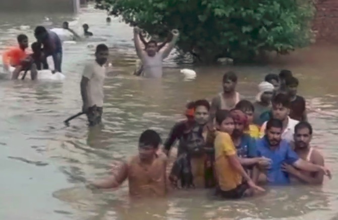 आगरा में उर्खरा रोड स्थित मीरा विहार में जलभराव से करीब 500 लोग फंस गए। इन परिवारों को पीएसी ने स्टीमर के जरिए बाहर निकाला। यहां हेलीकॉप्टर से मुडिय़ा मेला परिक्रमा शुरू होनी थी, जो खराब मौसम के चलते स्थगित कर दी गई।