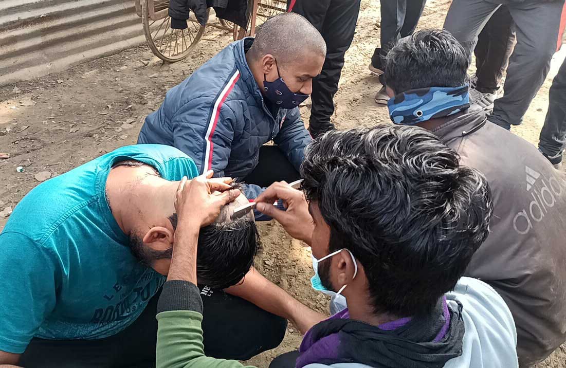रोजगार की मांग को लेकर मुंडन कराकर सरकार का पिंडदान कर रहे छात्रों और पुलिस के बीच झड़प