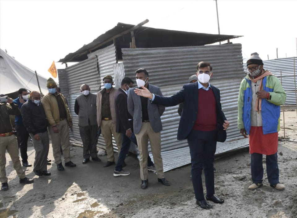 मंडलायुक्त ने माघ मेला के प्रभावित क्षेत्रों का निरीक्षण किया