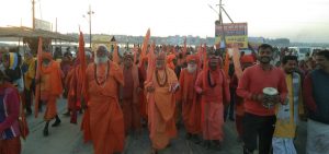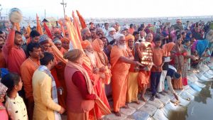 प्रयागराज (अनुराग दर्शन समाचार ) । प्रत्येक वर्ष की भांति इस वर्ष भी माघ मास के समापन के अवसर पर श्री नागेश्वर धाम अन्नक्षेत्र दण्डी स्वामी नगर से अखिल भारतीय दंण्डी संन्यासी परिषद् के राष्ट्रीय संरक्षक, श्री मद् जगद्गुरु शंकराचार्य स्वामी महेशाश्रम जी महाराज के तत्वावधान में लक्ष्य दिप ज्योति यात्रा निकाला गया । जिसमें हजारों की संख्या में दण्डी स्वामी एवं भक्त समाज सामिल हो कर हरिश्चंद्र मार्ग गंगा घाट पर लक्ष्य ज्योति अर्पण की,और गंगा जी से प्रार्थना करते हुए पूरे विश्व में छाई हुई कोरोना रुपी महामारी से शांति एवं पूरे देश में सामाजिक एकता एवं देश के उन्नति के लिए प्रार्थना किया गया स्वामी महेशाश्रम जी ने बताया की देश की एकता एवं अखंडता ही देश के उन्नति का साधन है इस लिए हम सभी जातिवाद मजहब बाद को मिटा कर आपसी भाई चारा स्थापित करते हुए वैदिक सनातन धर्म का प्रचार प्रसार करते हुए देश के उन्नति के लिए कार्य करें तभी हमारा देश विश्वगुरु बन सकता है, इस अवसर पर परिषद् के उपाध्यक्ष, स्वामी देवेन्द्रानन्द जी, महामंत्री शंकराश्रम जी महाराज, संगठन मंत्री शास्त्री स्वामी सहित हजारों के संख्या में संत एवं कल्पवासी ज्योति अर्पण कर गंगा जी से प्रार्थना की