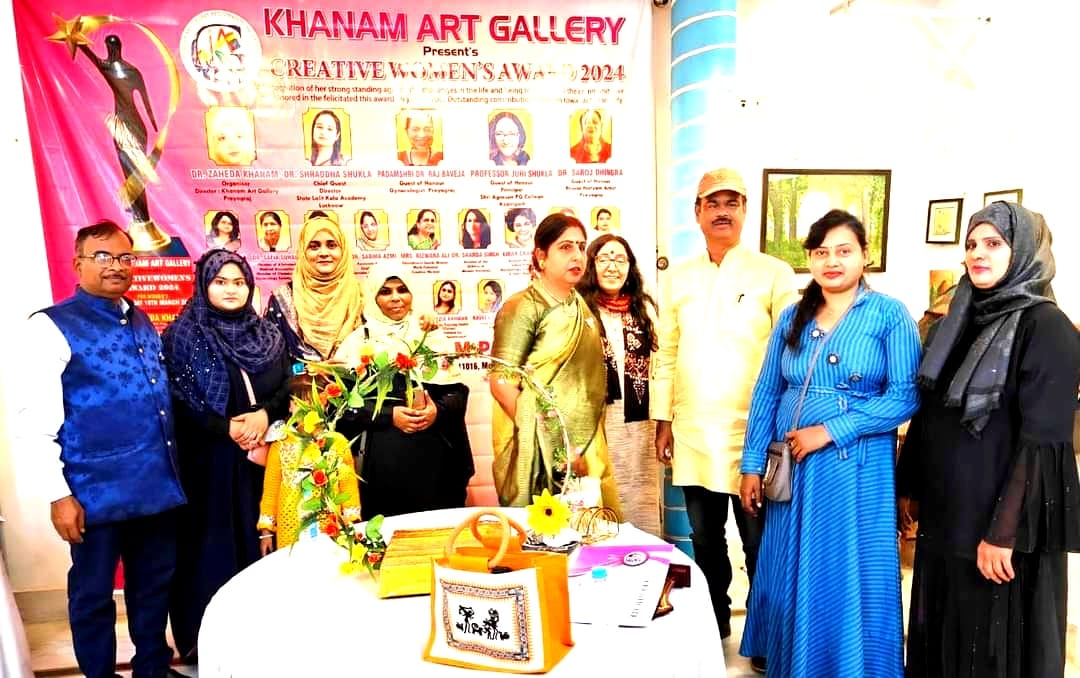 प्रयागराज ( अनुराग दर्शन समाचार ) । द्वितीय राष्ट्रीय रचनात्मक महिला पुरस्कार शो में महिलाओं को उनके रचनात्मक कार्यों के लिए हर क्षेत्र में जहां उन्हें कामयाबी मिली क्रिएटिव विमेंस अवार्ड 2024 से नवाजा गया। कला क्षेत्र से राज्य ललित कला अकादमी उ. प्र. की निदेशक डॉ.श्रद्धा शुक्ला, प्रो.डॉ जूही शुक्ला (प्राचार्या), कलाकार मुक्ता गुप्ता (झारखंड),पद्मश्री डॉ.राज बवेजा (चिकित्सा), डॉ.सरोज ढींगरा(भरत नाट्यम), डॉ मालविका राव (मनोवैज्ञानिक), डॉ.साफिया सुहैल (स्त्री रोग विशेषज्ञ), समीरा फ़ैज़ (अभियोजन अधिकारी वाराणसी), अदिति डेका पाठक (दृश्यकलाकार, शोधकर्ता , गुवाहाटी असम), प्रो. सबीहा आज़मी (अंग्रेजी), सनूबर इदरीस, शाहनाज़ मरियम, सबा बानो और दिल्ली से कश्फ़ी शमआइल (सेलिब्रिटी एंकर), शारदा सिंह, शेख नशरह इस्लाम, अल्पना सरकार, रिजवाना अली, किरण चावला, मरियम तारिक उस्मानी, साजिया रहमान,कैरून निशा शबरी आदि को क्रिएटिव वूमेंस अवार्ड- 2024 से पुरस्कृत व सम्मानित किया गया । सर्वप्रथम अकादमी कलाकार रवीन्द्र कुशवाहा एवं वरिष्ठ कलाकार तलत महमूद को स्टार गेस्ट के रूप में पुष्पा गुच्छ स्मृति चिन्ह से सम्मानित किया गया। सभी विभूतियों ने खानम आर्ट गैलरी की निदेशक डॉ.जाहेदा खानम की हृदय से सराहना की।