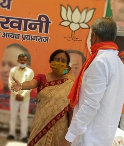 प्रयागराज (अनुराग शुक्ला )। आज इलाहाबाद की सांसद प्रो. रीता बहुगुणा जोशी ने शहर दक्षिणी के पार्षदों सेे भाजपा महानगर अध्यक्ष के कार्यालय कीटगंज में मुलाकात की और पार्षदों के माध्यम से गरीब जरूरतमंदों के लिए राहत सामग्री वितरण की जिसमें आटा, दाल, चावल, तेल, नमक, मसाला एवं मास्क आदि दिया।